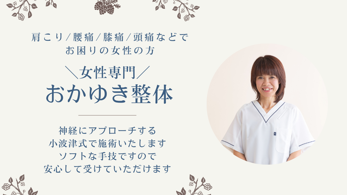 女性専門おかゆき整体の大塚です。当院のWebサイトをご覧いただきありがとうございます。